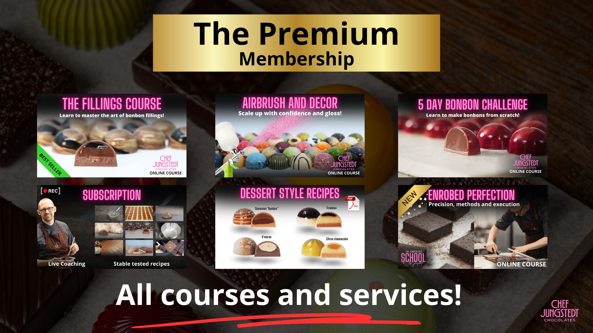 As a Premium Package buyer - you will have life time access to all current existing bonbon courses, recipes, material and be a part of the Chef Jungstedt Private Community!