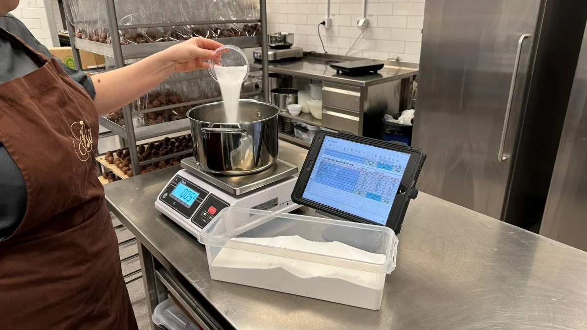 The ganache calculator also gives the capability to recalculate what size of a batch you want to make for the day without having to pull out a manual calculator to re-calculate each and every ingredient.
