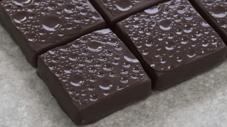 Water activity determines praline shelf life; lower values resist bacterial growth better. Just 2% excess water will